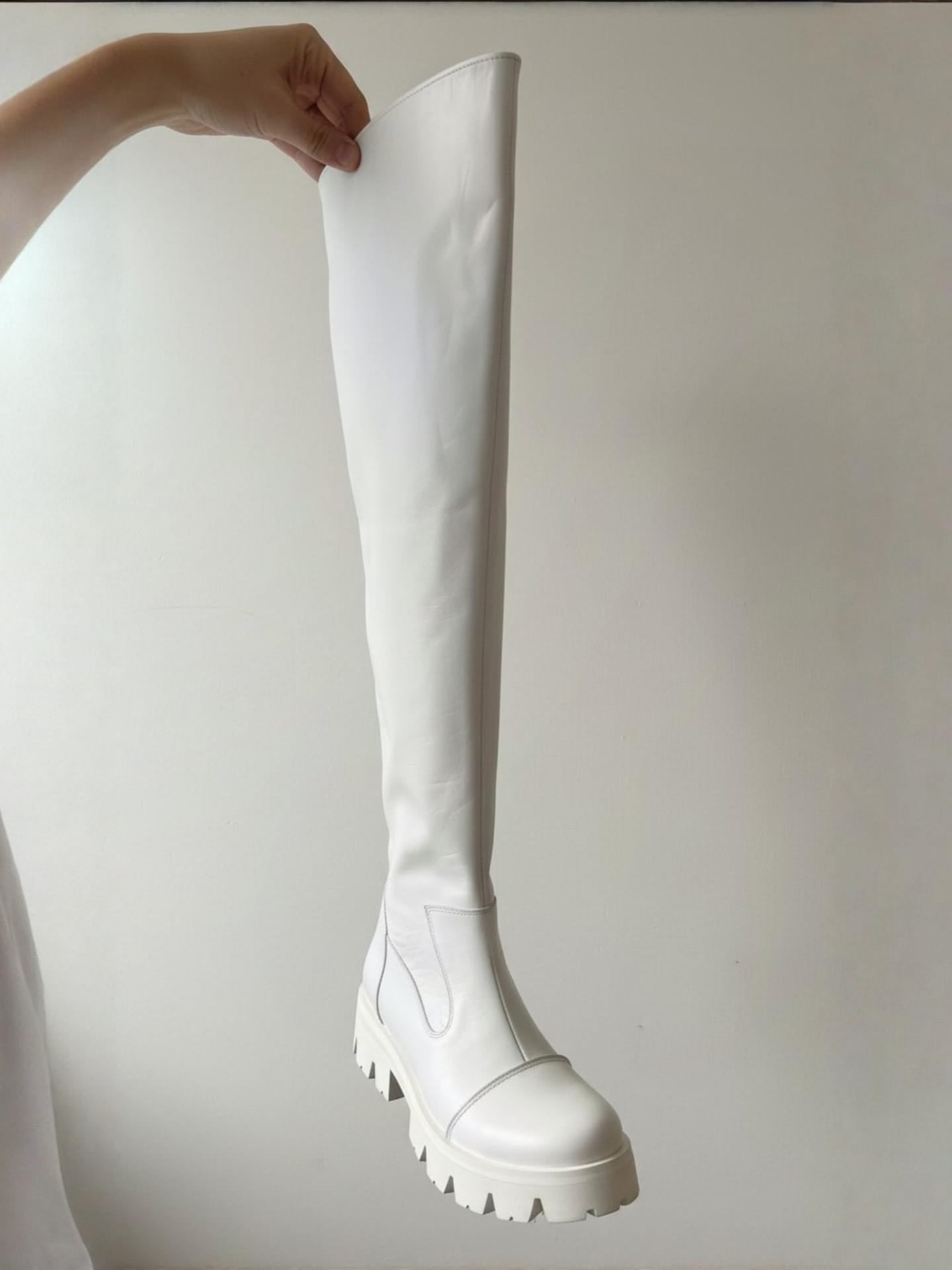 Cizmă tip bocanc, cu design urban și talpă robustă, creată pentru un look modern și funcțional. Silueta peste genunchi oferă protecție și stabilitate, iar liniile curate păstrează un echilibru între utilitar și fashion contemporan.